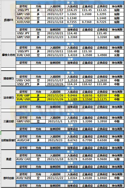 摘要:因美联储官员称2022年加息两次的可能性存在,上周五(11月26日)美元指数短线暴跌,盘中一度跌破96.00整数关口,法农银行两仓位调整,各投行挂单未变,未有挂单成交。
