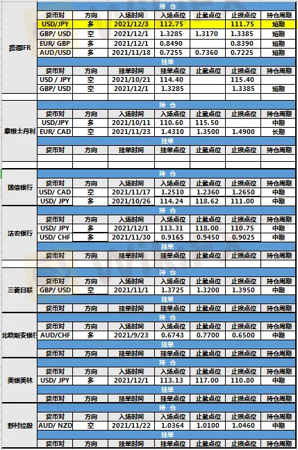 持仓方面,路透IFR美元兑日元仓位调整,入场点位调整至112.75,止损点位调整至111.75,目前处于持仓中。