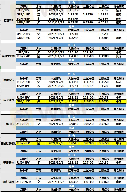 投行持仓报告 | 法农银行、法国巴黎银行仓位调整 各投行未有挂单成交