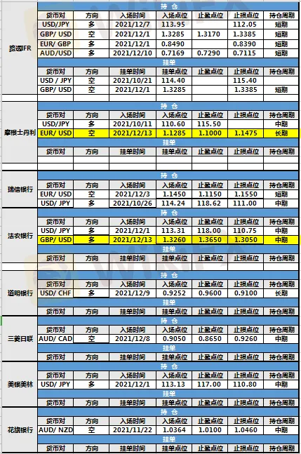 持仓方面,摩根士丹利、法农银行两投行仓位调整。摩根士丹利欧元兑美元入场点位调整至1.1285,止盈点位调整至1.1000,止损点位调整至1.1475,目前处于持仓中。法农银行英镑兑美元仓位调整,入场点位调整至1.3260,止盈点位调整至1.3650,止损点位调整至1.3050,目前处于持仓中。