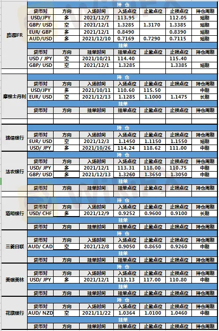投行持仓报告 | 各投行仓位未有调整 挂单未有改变