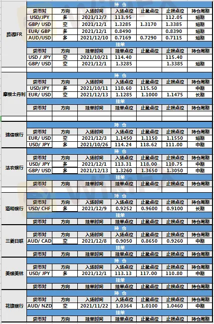 投行持仓报告 | 各投行仓位未有调整 各投行挂单未变