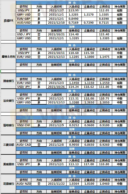 投行持仓报告 | 各投行持仓未有调整 各投行挂单未变
