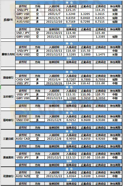 摘要:因美国12月非农大幅不及预期,上周五(1月7日)美元指数短线暴跌,盘中跌破95.80关口。欧元兑美元短线拉升,盘中突破1.1360关口,各投行持仓未有调整,各投行挂单未变,没有挂单成交。