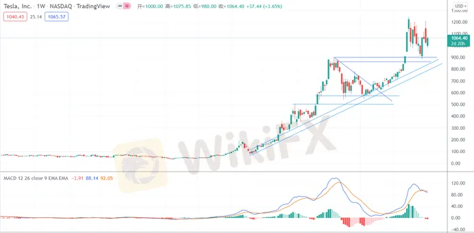 特斯拉目前徘徊在1100附近,下方支撑相对较强,马斯克套现的利空基本出尽,上方空间一旦打开,势必会有新高可能。