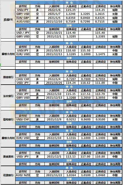 投行持仓报告 | 各投行持仓未有调整 各投行未有挂单成交