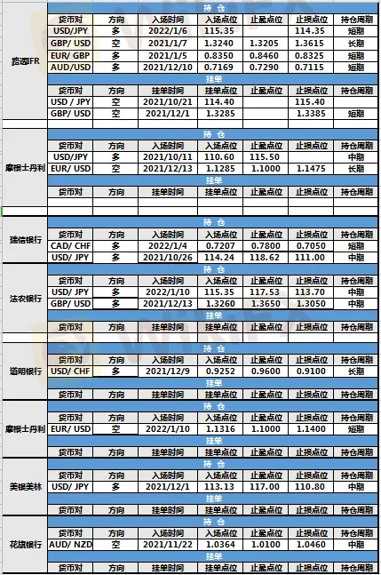 投行持仓报告 | 各投行仓位未有调整 各投行挂单没有改变