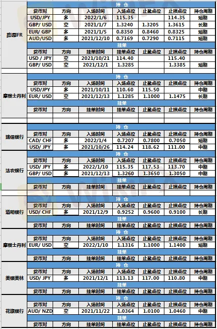投行持仓报告 | 各投行仓位未有调整 各投行挂单未变