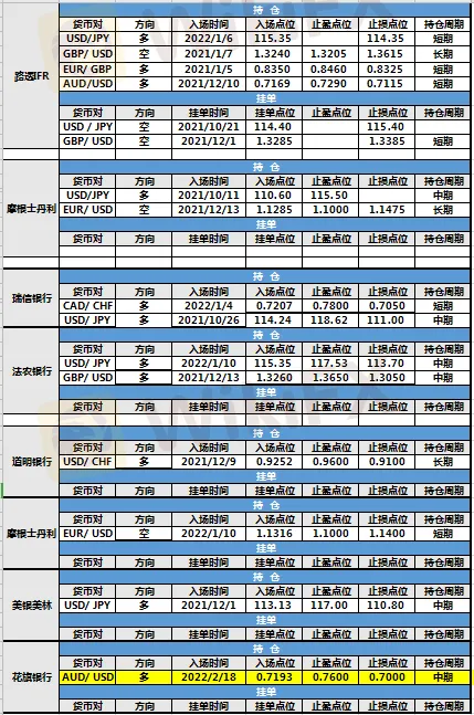 持仓方面,花旗银行澳元兑美元仓位调整,入场点位调整至0.7193,止盈点位调整至0.7600,目前处于持仓中。
