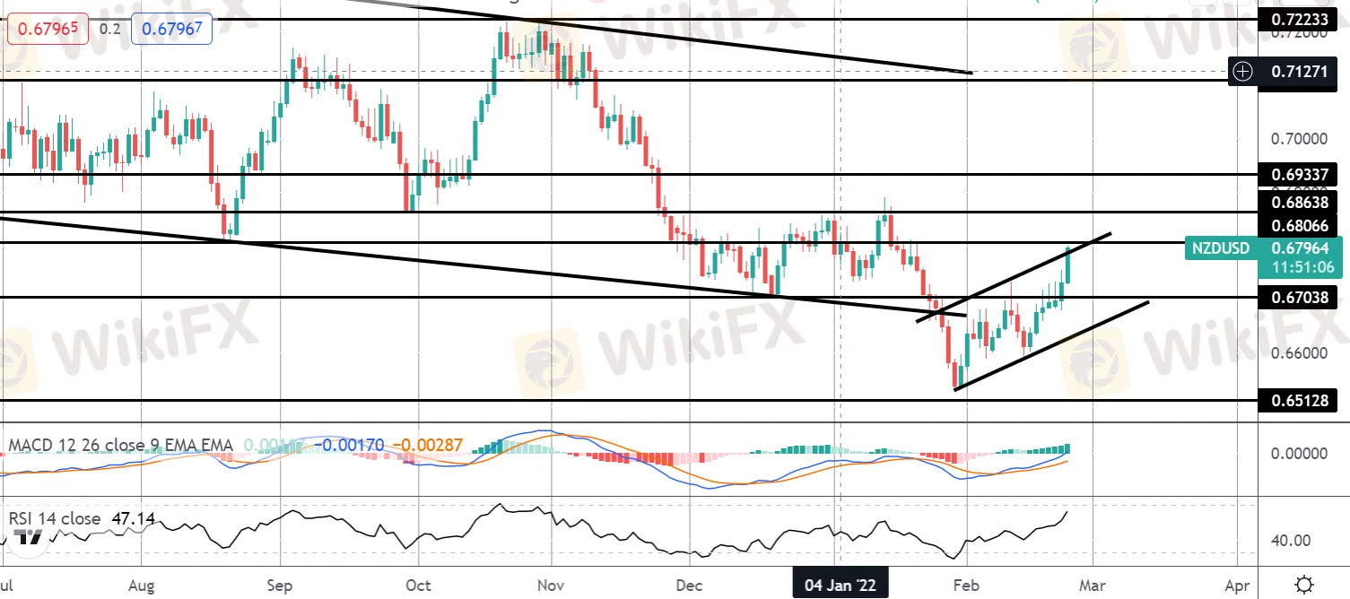 市场普遍预期央行将加息,这与此前会议上给出的鹰派前瞻指引和通胀持续上升一致。 CPI 预计在 2021 年最后一个季度达到 30 年的 5.9%,这巩固了该银行进一步提高利率的必要性。事实上,在本月加息的同时,新西兰联储还建议有必要进一步加息。在与该决定一起发布的声明中,新西兰联储指出:“鉴于增长和就业的中期前景以及通胀的上行风险,委员会同意随着时间的推移将进一步取消货币政策刺激措施。”