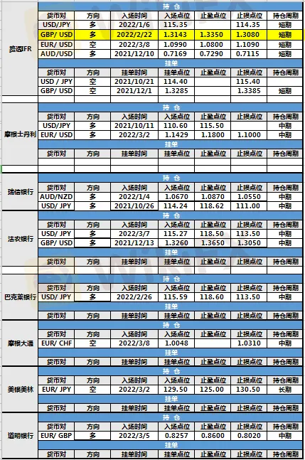 投行持仓报告 | 路透IFR英镑兑美元仓位调整 各投行未有挂单成交