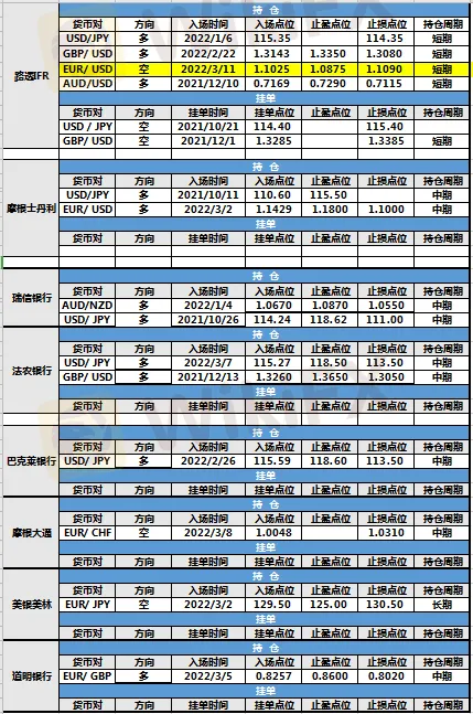 持仓方面,路透IFR欧元兑美元仓位调整,入场点位调整至1.1025,止盈点位调整至1.0875,目前处于持仓中。