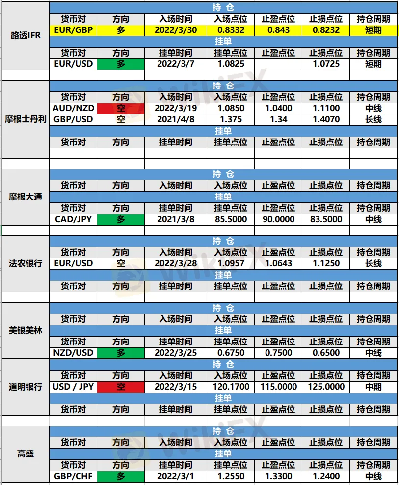 投行持仓报告 | 路透IFR欧元兑英镑仓位调整 各投行挂单未有成交