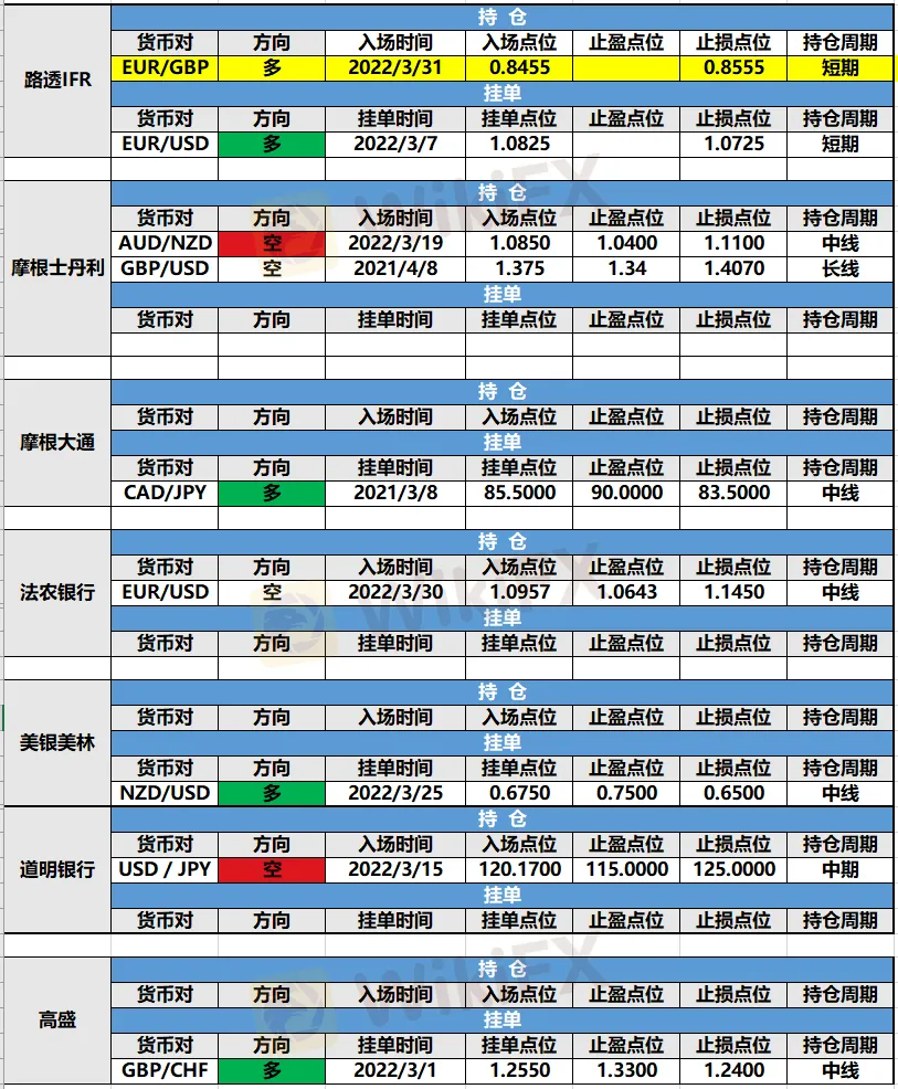 持仓方面,路透IFR欧元兑英镑仓位调整,入场点位调整至0.8455,止损点位调整至0.8555,目前处于持仓中。