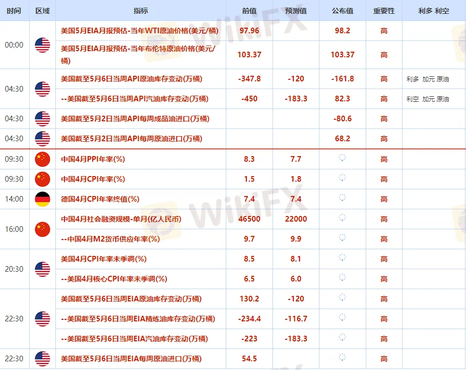 周二美元指数小幅上涨,在关键通胀数据出炉前,美元空头继续蛰伏,因数据可能为美联储货币政策路径提供线索。现货黄金则跌至200日均线附近,继续受到强势美元和加息前景的压制。美国原油周二跌破每桶100美元,创两周来最低,需求前景因亚洲疫情封控和日益增长的经济衰退风险而承压,