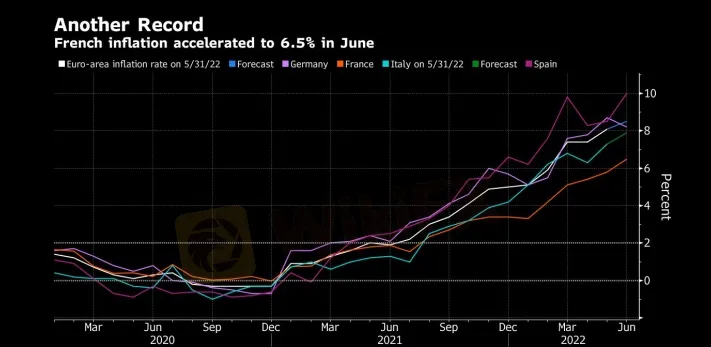 法国的6月份通货膨胀率飙涨5.8