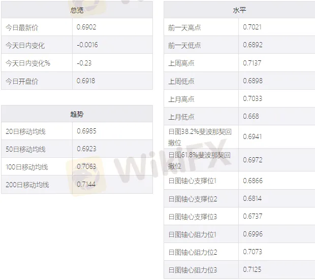另一方面,任何有意义的回升突破50% Fibo水平现在可能被视为卖出机会,并在隔夜震荡高位附近(约0.6970区域)继续受限,后者与38.2%的Fibo水平相吻合,随后是0.7000心理关口。若令人信服地突破上述阻力,将消除近期负面展望,并引发空头回补。