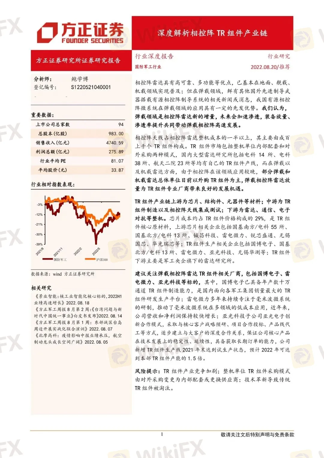 本文来自方正证券研究所于2022年8月22日发布的报告《深度解析相控阵TR组件产业链》,欲了解具体内容,请阅读报告原文。
