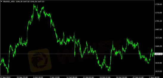 周二(11月01日),在美联储决议案前,现货黄金在低位中震荡上行至最高1656美元。但在美国公布ISM制造业采购经理人指数(PMI)后,现货金短线回落近10美元其后回稳。市场今天的焦点,将会放在美联储决议案,市场普遍预期将宣布加息75个基点。现货黄金收报1647.53美元/盎司,上升14.78美元/盎司,日内最高触及1656.77美元/盎司,最低触及1630.78美元/盎司。