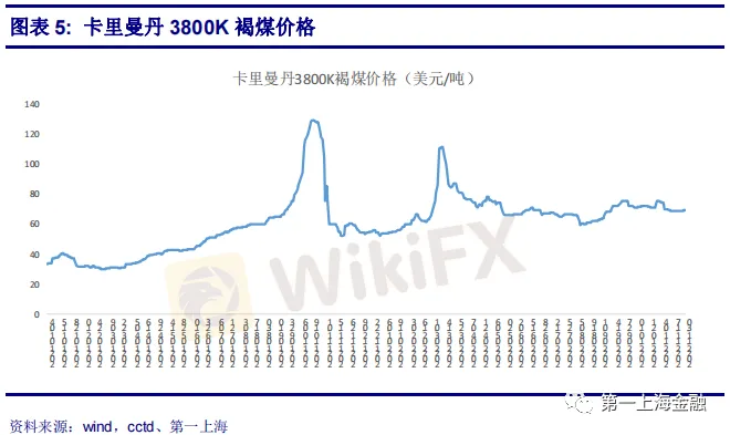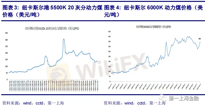 澳洲煤炭价格近期继续回升,纽卡斯尔港 6000k 价格从上周的 364.54 美元/吨上涨至 397.54 美元/吨;5500k 高灰产品价格小幅下跌至 133.17 美元/吨,较上周下降 3 美元。主要依旧受益于欧洲天气持续转冷,煤炭与天然气库存开始下降。加之澳大利亚供应依旧处于偏紧状态,导致高卡煤价格提升明显。5500ka 高灰产品主要受到澳大利亚气象局改变了之前发出的拉尼娜现象预警,并表示 12 月将不会发生大规模降雨,预期一些生产商可以提高产量,从而压缩了中低灰煤炭价格。