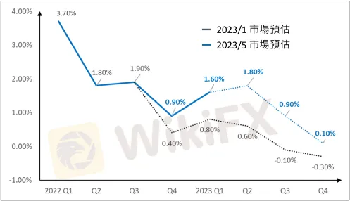 标普500指数公司第一季财报公布完虽然整体仍衰退-2.1%,但相较于3月底的-6.7%大幅上修;第二季预估获利虽然预期衰退-6.4%,但整个2023年度仍是成长1.2%,2024年更因为基期效应下整体营收获利高达8.5%,在预期最坏状况已经过去下,市场不仅没卖出持股,甚至提前低接布局。