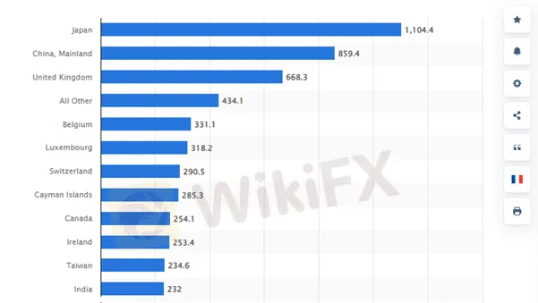 数据显示,日本目前是美国国债第二大持有国,其持有量高达1.1万亿美元,高于中国的8,600亿美元(第三大持有国)以及英国的6,680亿美元(第四大)。