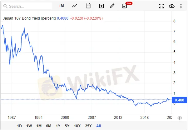 |日本10年期国债收益率一览,数据来源:TE|