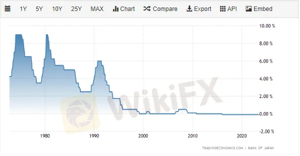 |日本央行(BoJ)官方利率一览,数据来源:TE|