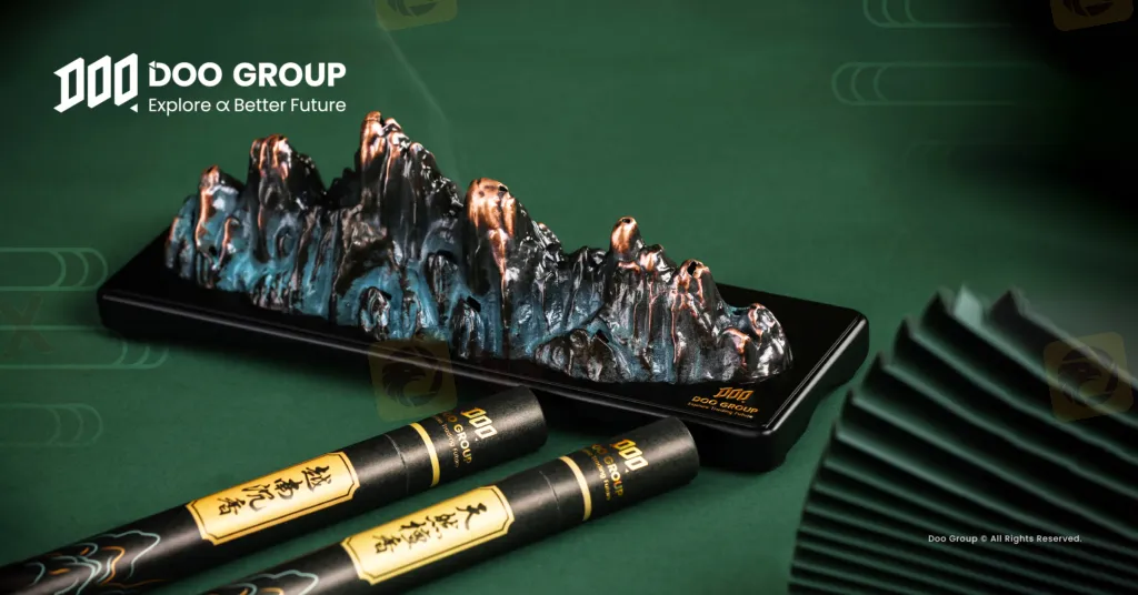 线香不仅颐养身心,还可让您在丝丝清香中调息吐纳,安神净气。养生越南沉香及天然檀香搭配云入山河香座使用,让您常赏山间云雾缭绕的美景,使每个交易瞬间更具仪式感。Doo Group 更借此云入山河之景:祝您交易之路永攀高峰,万事顺意。