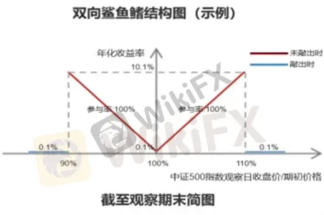 | 参与率: | 用于限制鲨鱼鳍期间的超额收益,产品设计上往往会加入参与率这一条件,来限制收益过大的情况。 |
