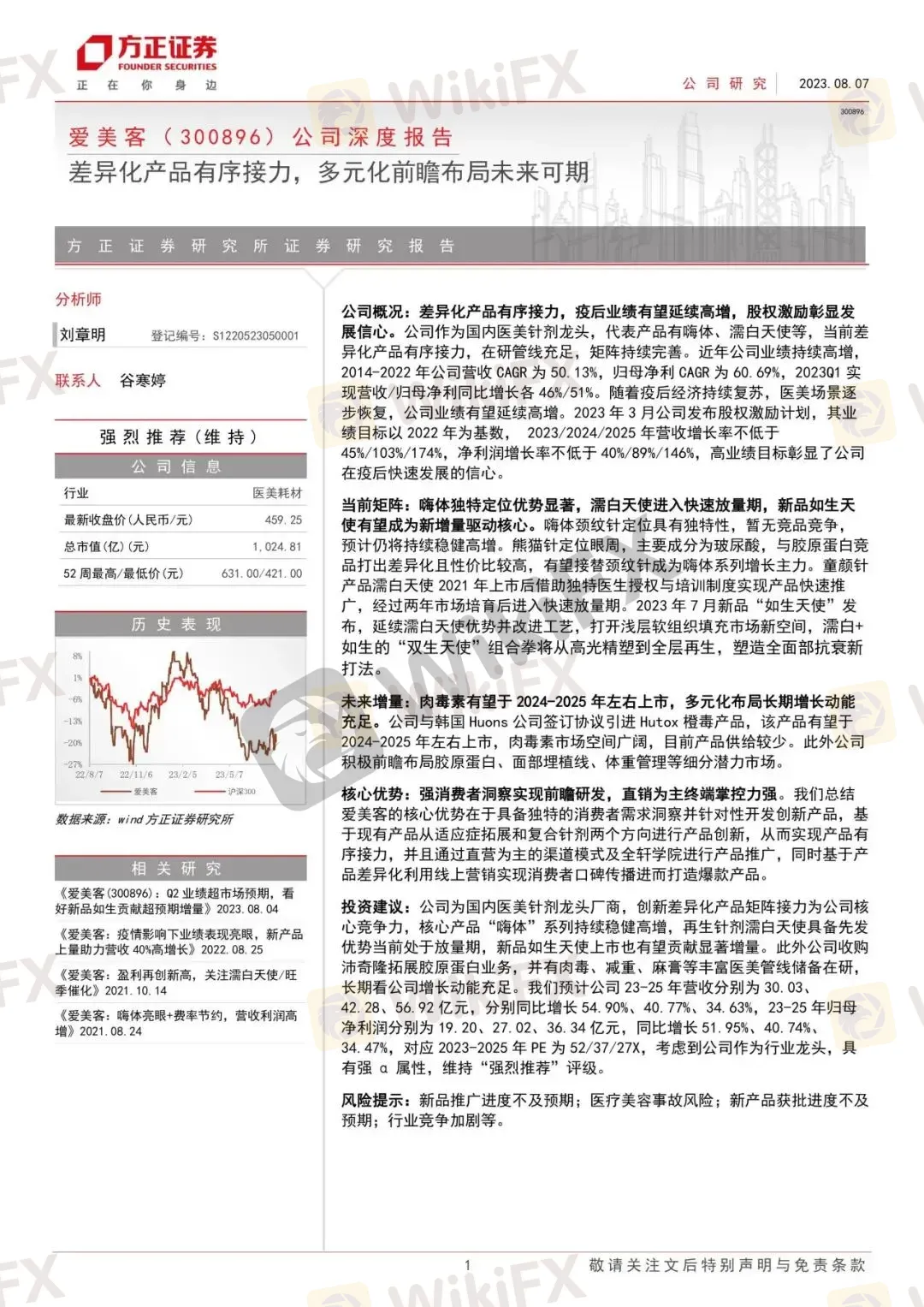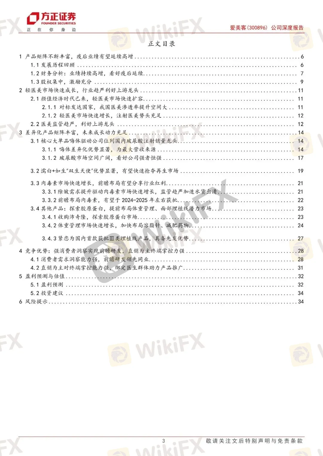 风险提示:新品推广进度不及预期;医疗美容事故风险;新产品获批进度不及预期;行业竞争加剧等。