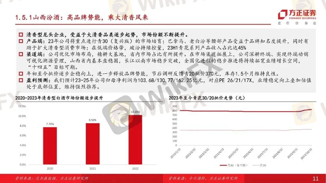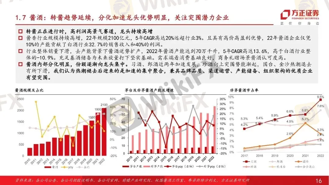 p1)白酒中不同香型份额变化或演绎出新机会;未来白酒行业持续分化,香型之间的竞争将不断演绎,未来预计浓清酱香占比不断趋近,其中【山西汾酒】作为清香龙头将受益于大清香品类逐步起势而带来的市场份额不断提升,以及受益于未来酱酒市场稳步扩容下带来提升空间的【珍酒李渡】; p2)通过供应链精进持续提供高性价比产品的公司;【盐津铺子】【千味央厨】【立高食品】【安井食品】等有望通过自身产品能力以及供应链能力不断提升市场份额