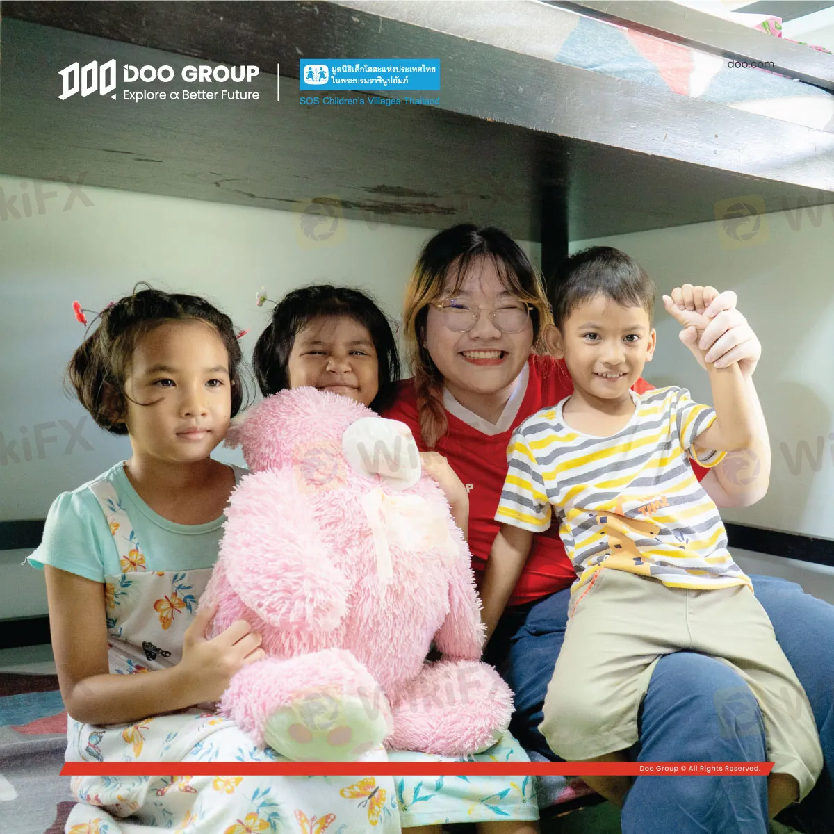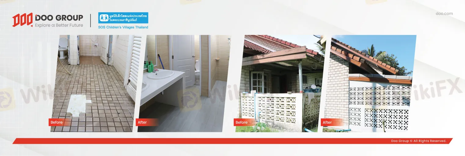 Doo Group 一直积极参与各类公益项目,长期支持泰国 SOS 儿童村慈善发展,为孩子们提供良好的成长环境与教育资源。早在 2022 年, Doo Group 旗下互联网券商 Doo Prime 捐赠了 35 万泰铢,用于支持泰国合艾 SOS 儿童村房屋翻新计划,改造老旧房屋,改善孩子们居住环境。随着该计划的逐步实施,儿童村的房屋变得更加安全舒适,也为孩童们打造了更好的成长环境。