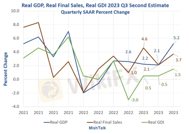 笔者认为该次的上调完全不需要担心,主要是美联储和市场担心的消费、服务方面,出现明显减缓,在GDP上修的同时;PCE物价指数也跟着被下修,核心个人消费支出(PCE)物价指数年化季环比修正值2.3%,同样低于前值和预期2.4%。而个人支出的下调则反映出服务支出增长出现放缓,说明抑制通胀的高利率也使家庭和企业的消费和投资成本增加,从而减缓了经济的发展,预计明年利率仍将居高不下,制约经济发展。
