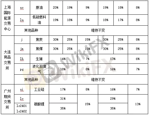 郑州商品交易所、中国金融期货交易所各品种期货合约交易保证金标准、涨跌停板幅度维持原标准;中国金融期货交易所各期权合约保证金调整系数维持原标准。