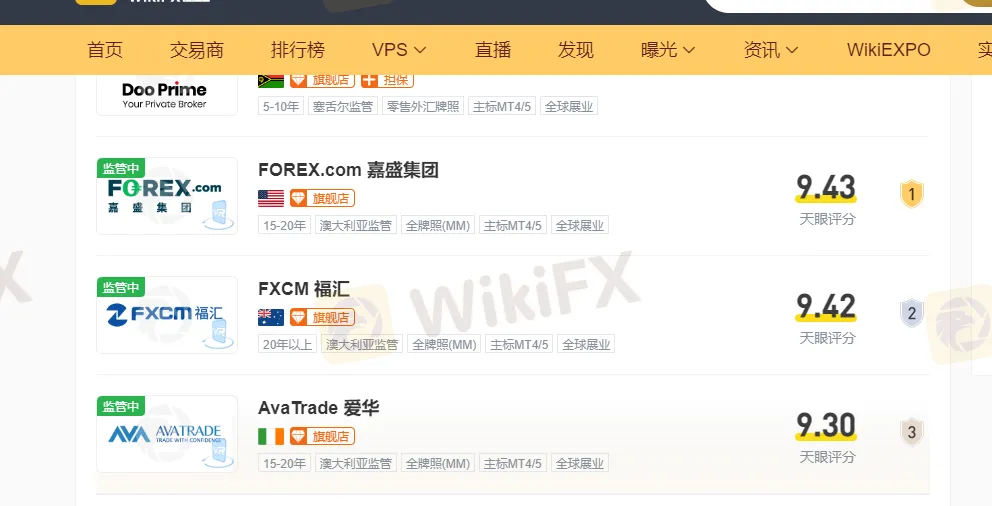 AvaTrade爱华作为国内优质差价合约经纪商,在全球知名媒体天眼平台,在内地众多知名经纪商中获得天眼排名第三,用户9.3评分,AvaTrade爱华多重监管下,为用户提供丰富的交易产品,高效便捷的交易平台,为用户交易提供优质的客户的服务,让在用户的交易中可以保驾护航。