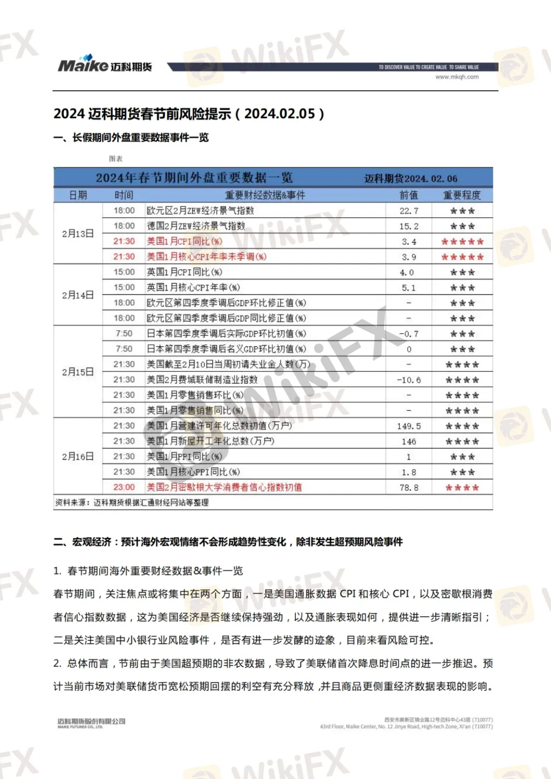 2024迈科期货春节前风险提示