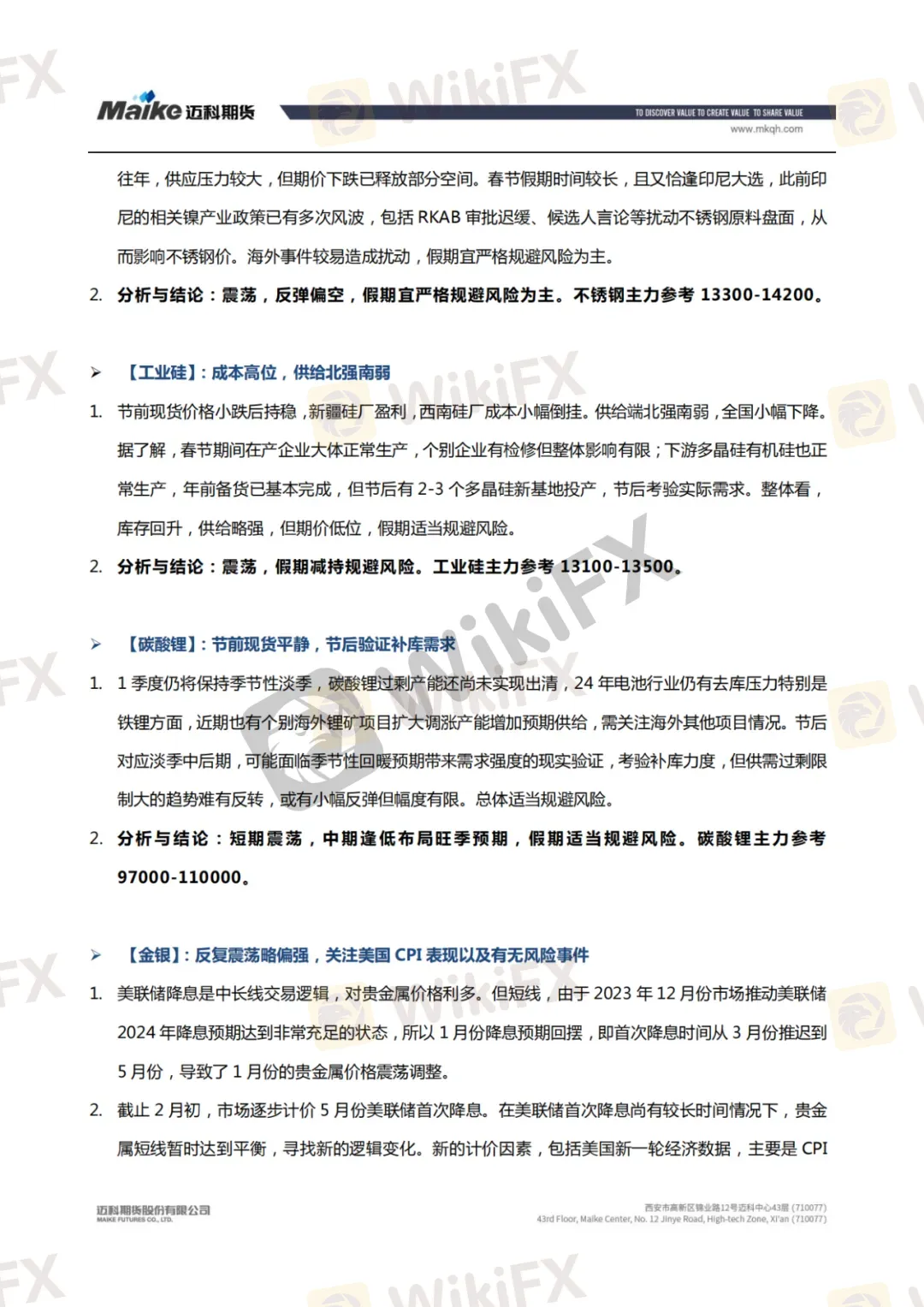 摘要:2024迈科期货春节前风险提示