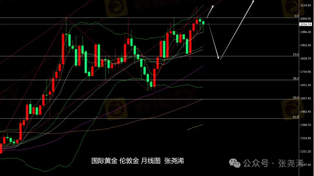 技术上:月图级别,金价去年12月巨幅震荡收取高位十字见顶形态,今年1月虽触底回升收线,但仍收线在2075美元下方,也增强了其见顶看空预期,本月走势就此也跟随其看空压力表现走弱,虽目前再度触底回升走盘,也即将在今日收官,大概率将继续收线在2075美元之下,则暗示后市仍将有较大的回落空间风险;并继续觊觎进一步回落,去触及更低的30月均线支撑1857美元以及60月均线支撑位置1770美元的预期;反之,如突破2075美元阻力持稳收线,则可进一步走强上看2100或2171美元附近目标。