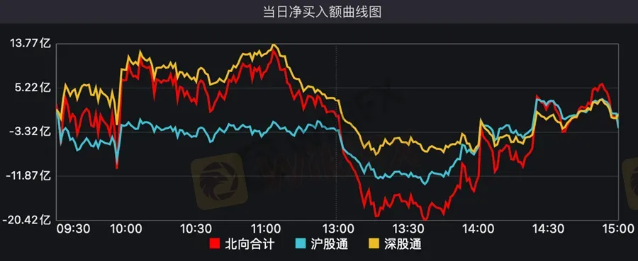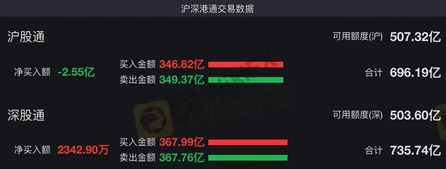 以每日额度余额口径,北向资金截至A股收盘净流入43亿元;以买卖成交额口径,北向资金净卖出2亿元。