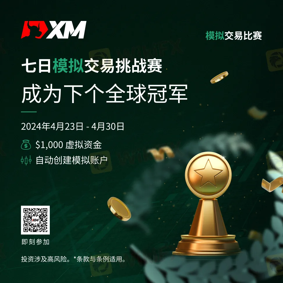 2024年04月23日至04月30日期间,报名参加XM模拟交易比赛,挑战自我,制定交易策略,瓜分总值 $10,000 美元现金奖励!