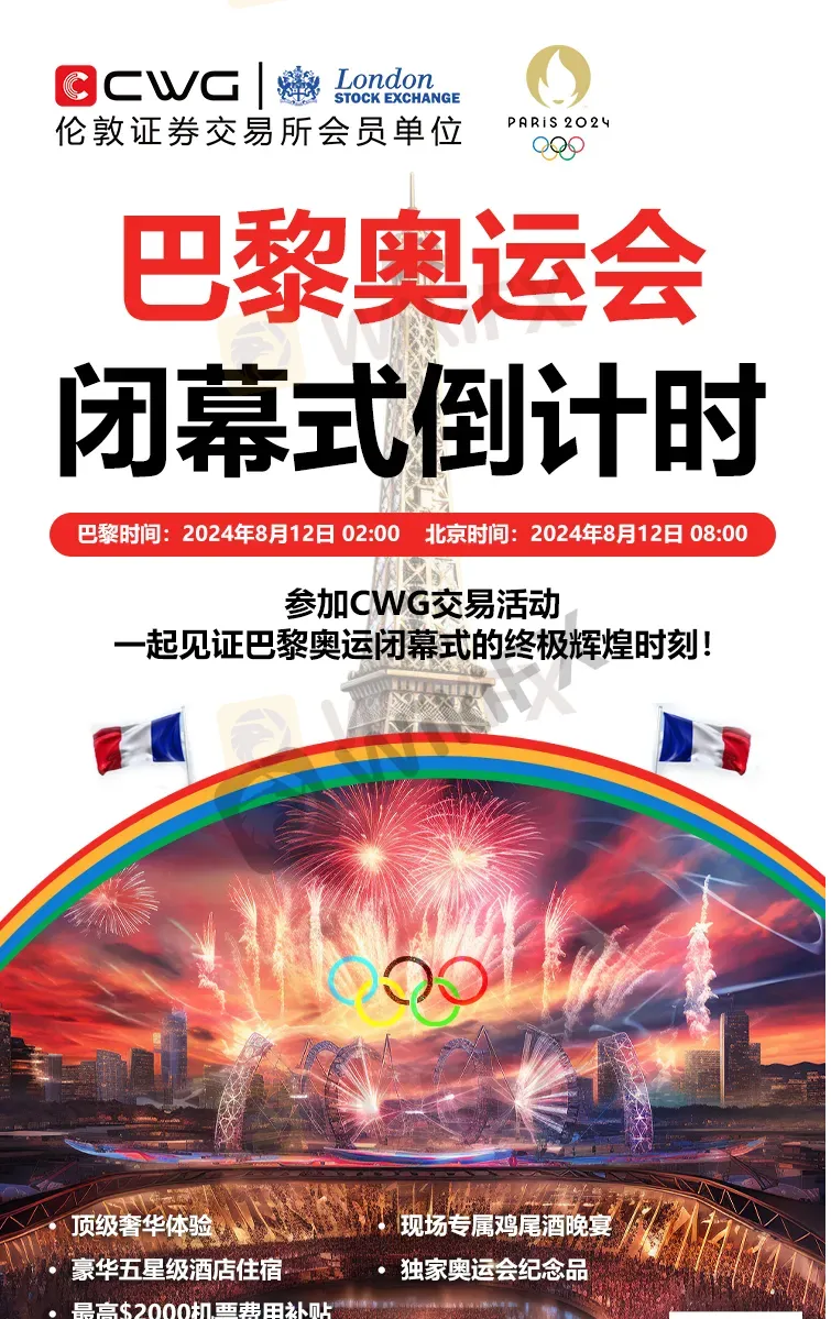 巴黎奥运会闭幕式倒计时已开始,巴黎将再度闪耀!8月12日,CWG与你相约闭幕式,共同见证荣耀时刻!