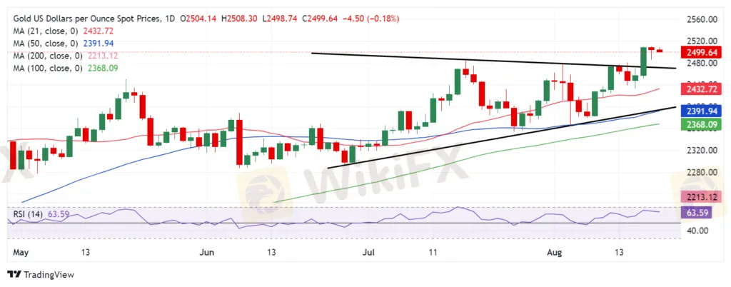周一早盘,金价在 2,500 美元附近挣扎,刷新了 2,510 美元的历史高点