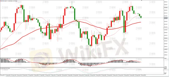 周四(8月29日)公布美国第二季度实际GDP年化季率修正值录得3%,超过市场预期以及前值的2.8%,数据显示美国经济并没有想象中那么差劲;同时公布的美国截至8月24日当周初请失业金人数录得23.1万人,略低于市场预期的23.2万人,以及前值的23.3万人,就业市场略有改善,将打压9月份大幅降息的预期,金价恐将承压。