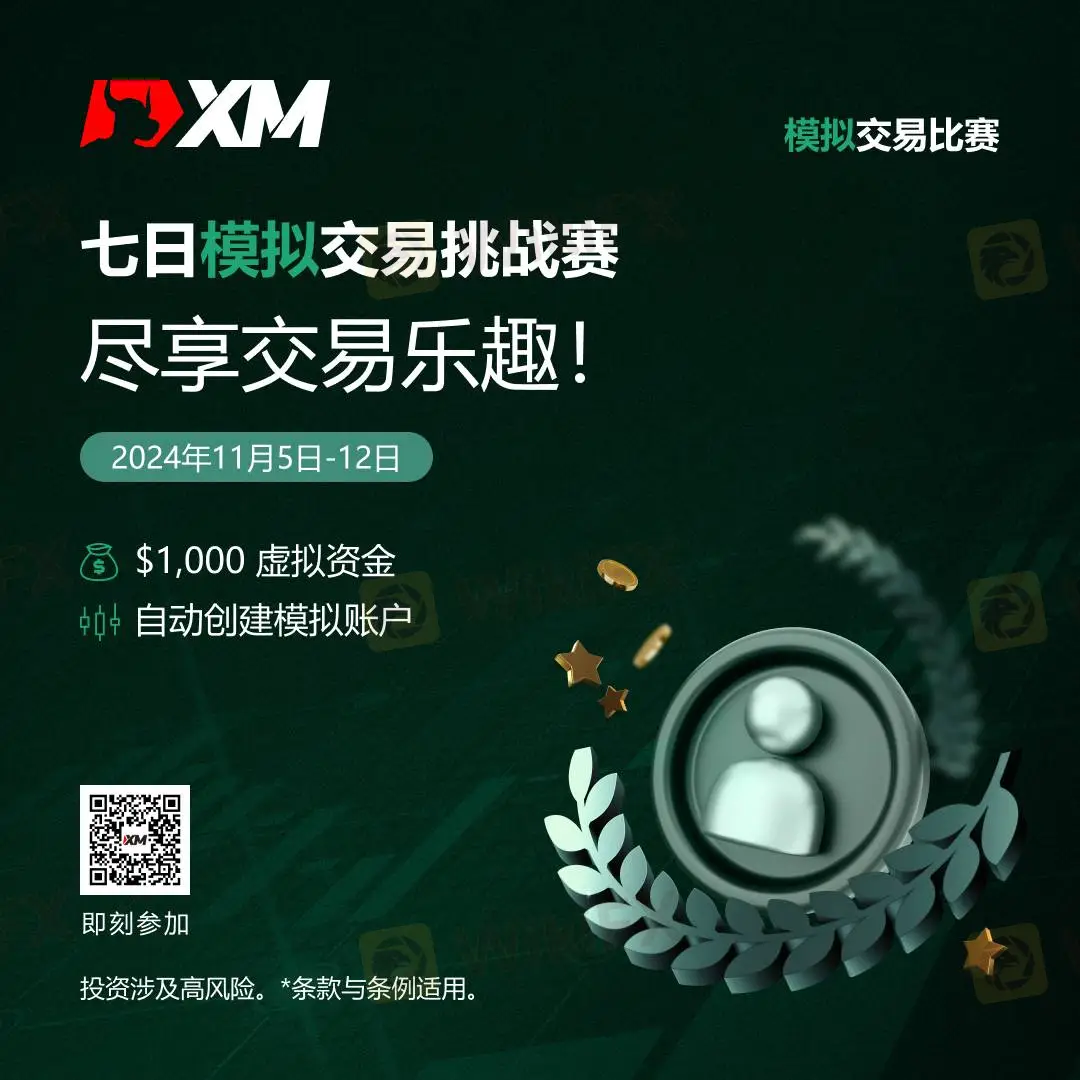 2024年11月05日至11月12日 期间,报名参加XM模拟交易比赛,挑战自我,制定交易策略,瓜分总值 $10,000 美元 现金奖励!
