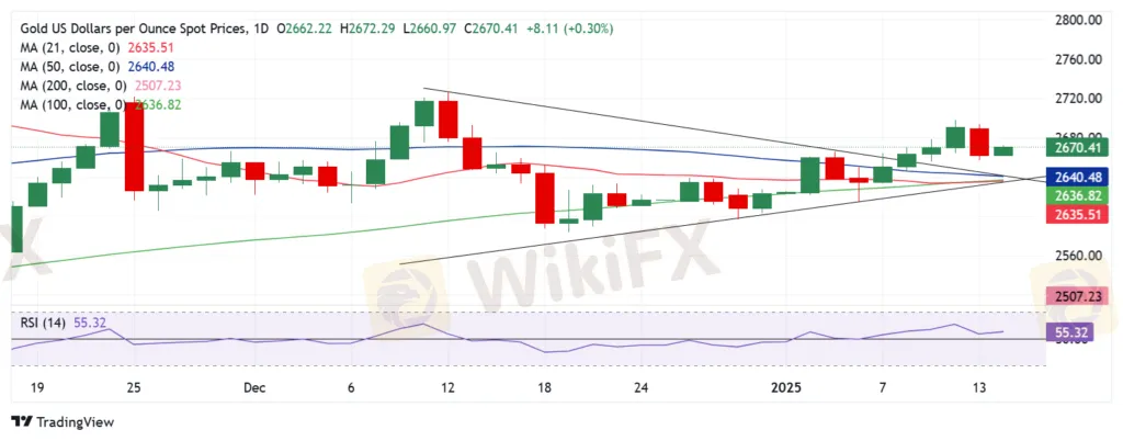 另一方面,强劲支撑位在 2,641 美元左右,50 日 SMA 与三角形阻力位重合。在持续下跌的情况下,金价可能在 2,635 美元(21 日 SMA 和 100 日 SMA 的交汇处)立即得到喘息。黄金买家的最后一道防线位于 1 月 6 日的低点 2,615 美元。