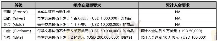 · 若未达到季度交易量要求,则会降级(每季度结算一次)。