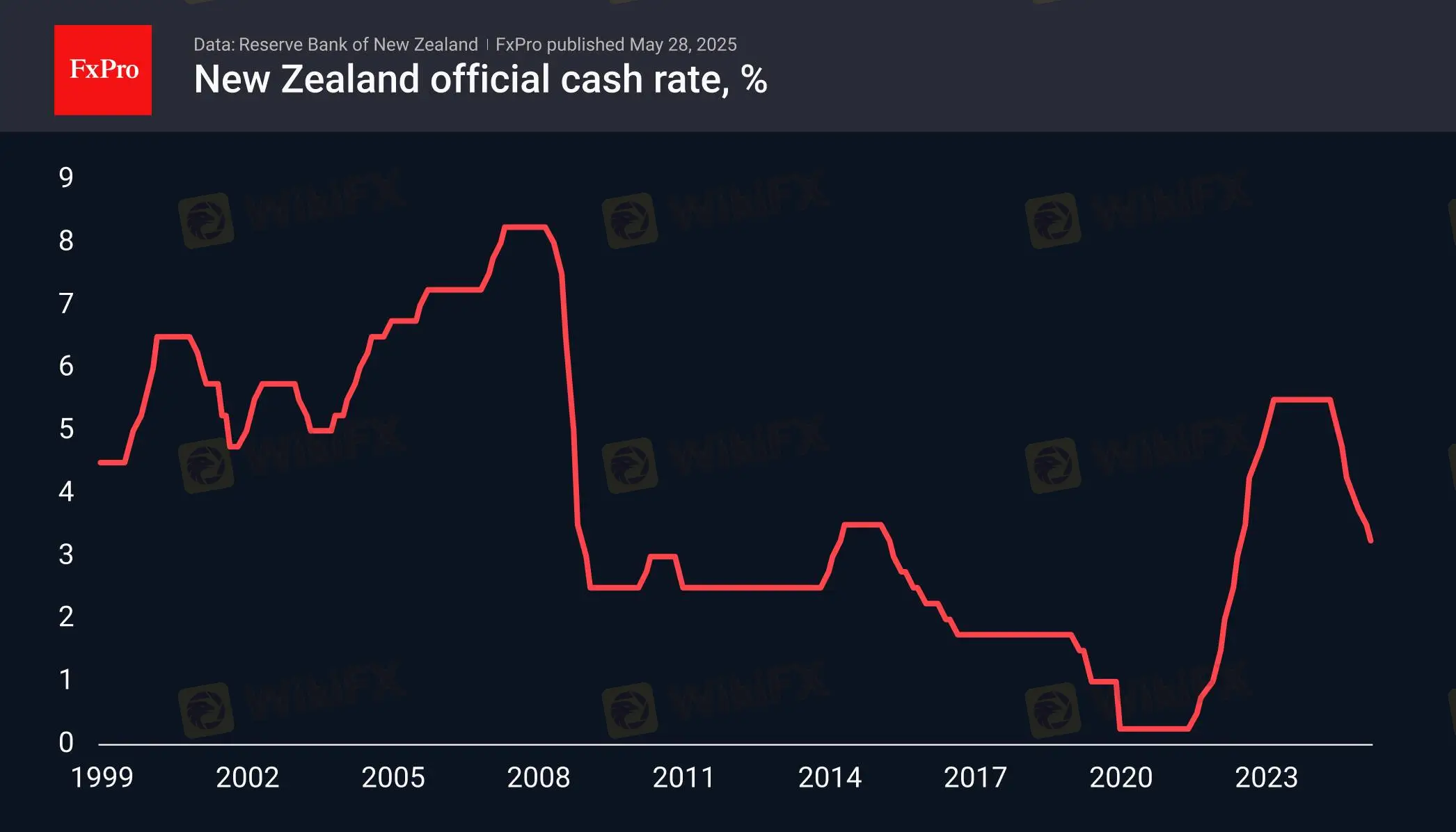 摘要:注:此文章由FxPro高级分析师Alex Kuptsikevich撰写正如预期所料,新西兰储备银行将其关键利率下调 25 个基点至 3.25%。自去年 8 月以来,这已是本轮第六次降息,累计降息幅度达 125 个基点。在随附的一份声明中,该央行表示,通货膨胀年同比已加速至 2.5%,企业和家庭的通胀预期也有所上升。另一方面,核心通胀率的下降让人们相信,通胀将在中期回归至 1% - 3% 目标区间的