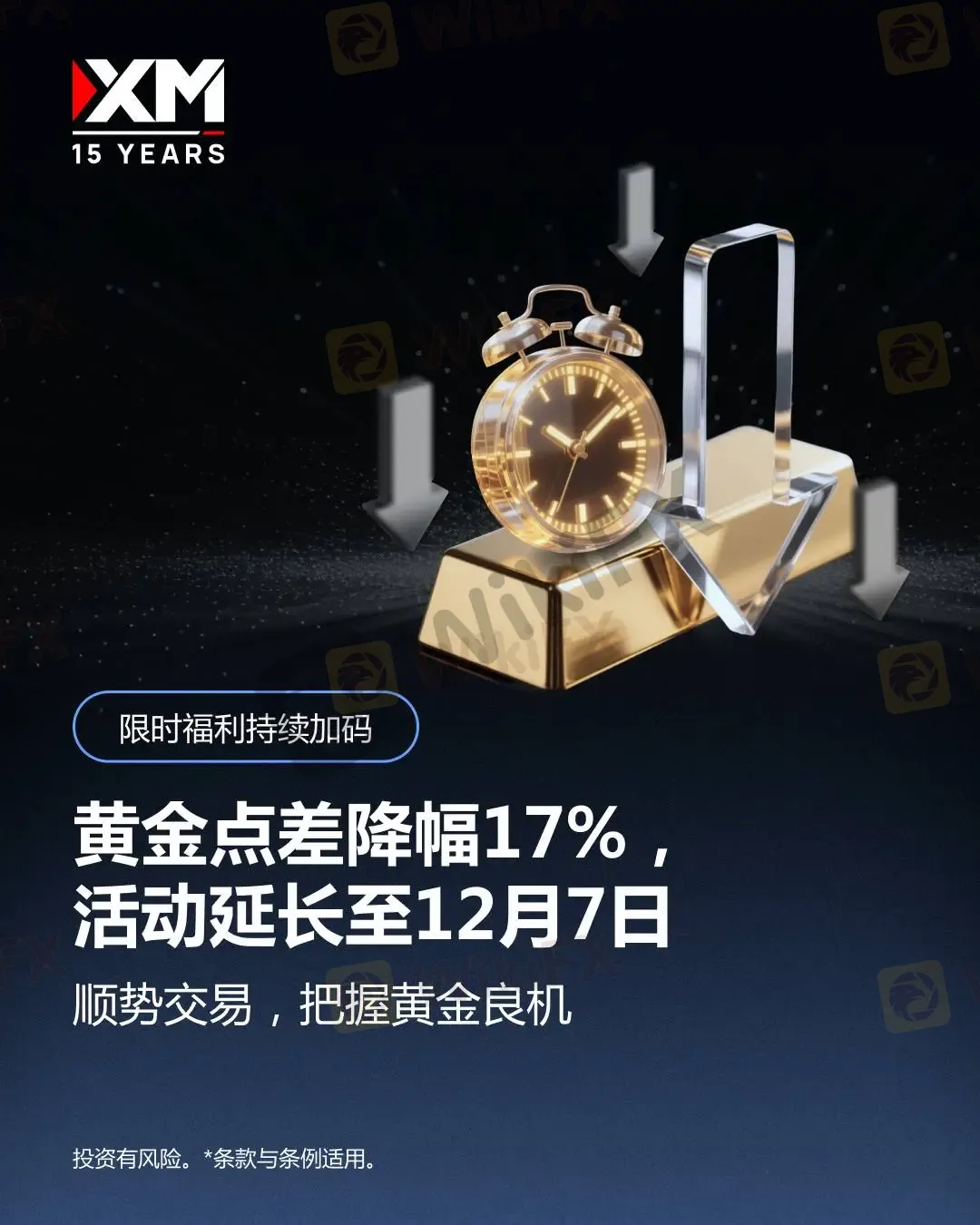 摘要:黄金市场正处于历史高点,波动即是机会!准备好以低成本抓住这波行情获利吗?为感谢广大客户的信赖与支持,XM重磅宣布:黄金交易点差福利延长两个月!活动期间,使用标准账户交易黄金,即可享有平均点差直降17%的专属福利。现在正是掌握短期价格波动、灵活进出市场的绝佳时机。即日起至12月7日,机会难得,立即行动!登录账户,开启您的黄金低成本交易之旅!