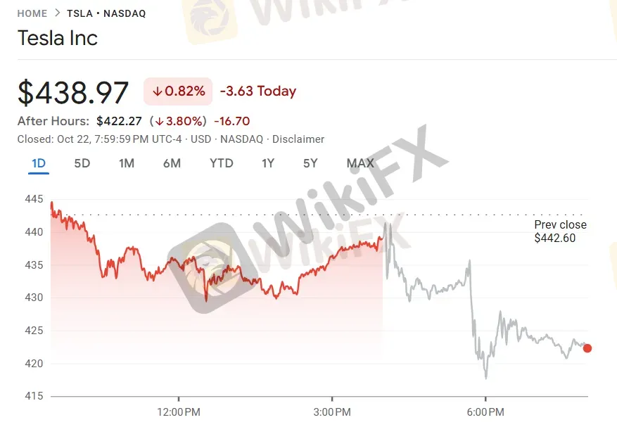 特斯拉第三季度获利不及预期,盘后股价下跌逾 3%